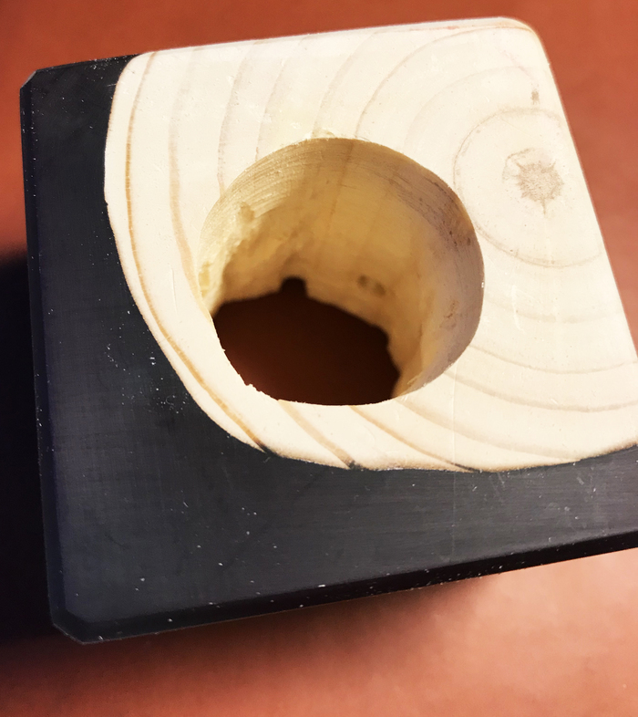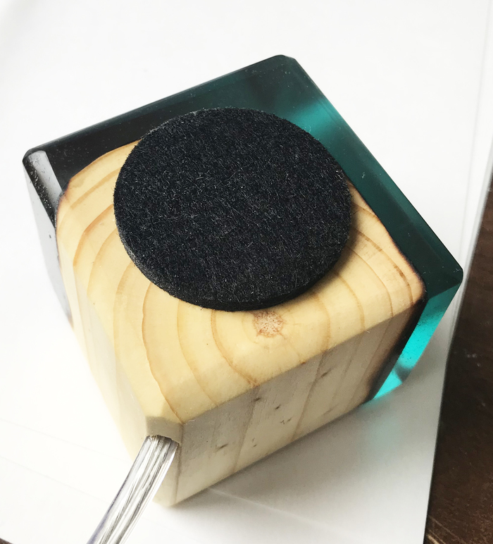 Образовавшееся отверстие на дне корпуса закрываю накладкой для мебельных ножек: