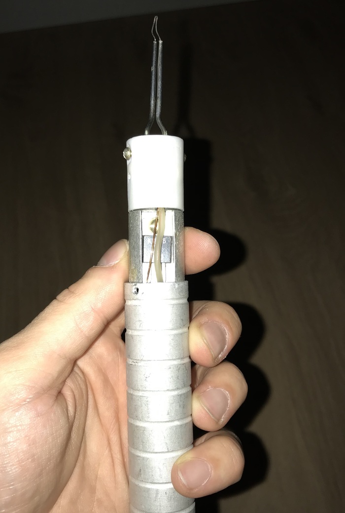 Теперь нужно прикрыть зазор между корпусом и патроном, для этого взял тонкий провод: