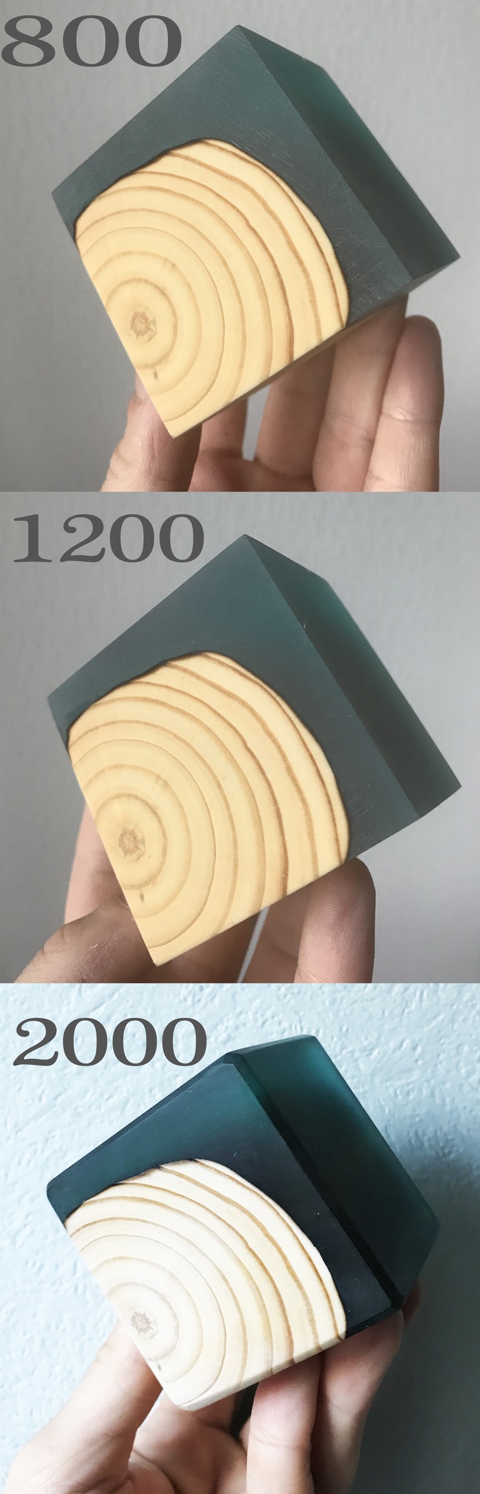 Беру сначала лист на 400 грит, грубо вывожу плоскости, и далее повторяю процедуру уменьшая зернистость наждака до 600, когда риска от предыдущего этапа полностью сходит беру 800 и так далее: