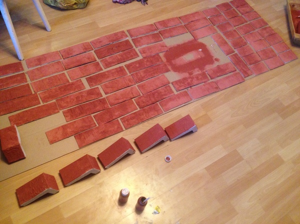 Приступаем к облицовке. Это самый ад. Нет, серьезно, на эти кирпичики у меня ушло 90% времени. Процесс выглядит следующим образом: