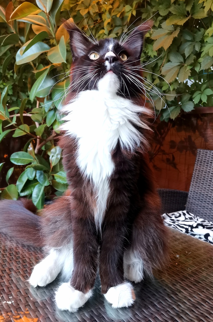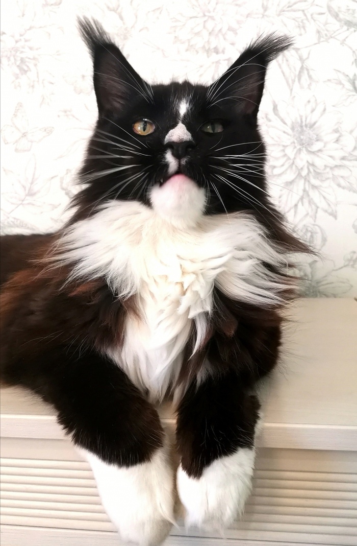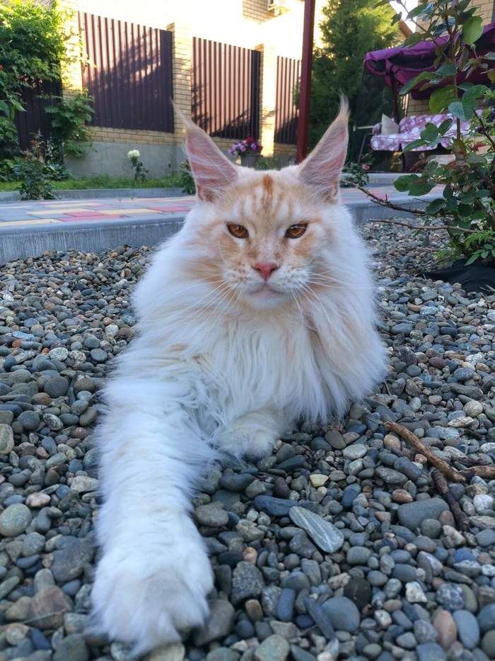 Шеридан. Лучший друг пуделя. Мейнкун-шаболда. Несмотря на внушительные размеры и солидное лицо, добряк и бестолочь. Мохнатожоп. Цель в жизнь - насобирать побольше мусора и принести его в хвосте и на штанах прямо на белый ламинат в дом. В этом он преуспевает, поэтому робот-пылесос Аркадий работает в две смены.