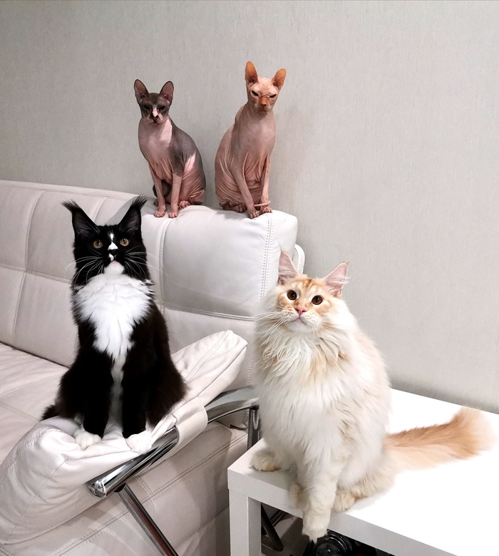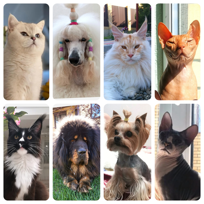 Шли годы. И как-то постепенно наша семья обросла целой командой хвостатых-лохматых-лысых-зубастых. 3 собаки и 3 кота считались идеальной командой для трех людей. Но 3 недели назад что-то пошло не так у нас появился новый зверь, семимесячный мейнкун по имени Шеридан (пудель Бейлис у нас уже есть, а вот Шеридан отсутствовал...) Так что теперь это "Великолепная семерка".