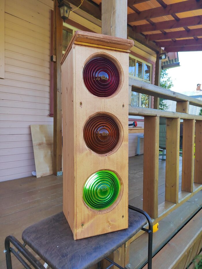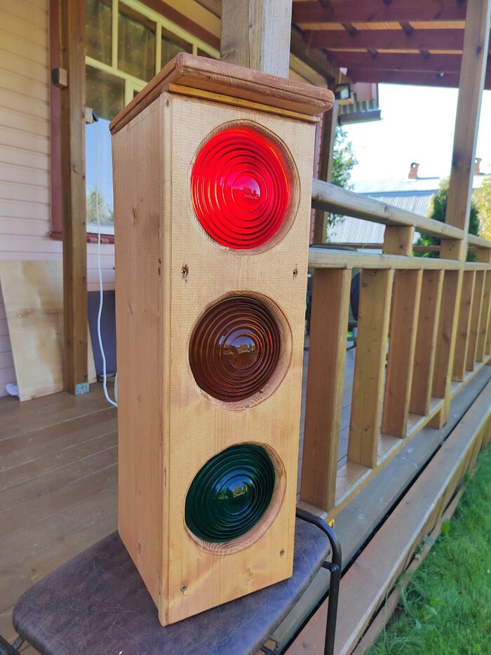 Подсмотрел тут в ленте, что отец делал с сыном скворечник. Мы много что делаем вместе. Вот, например, закрывал для себя детский гештальт - делал светофор на пульте ДУ. Купил на Авито за недорого линзы ЖД светофоров, контроллер и доски на стройрынке. Распустили, обтесали, выпилили, отфрезеровали, покрасили, сделали внутрянку от 220в.
