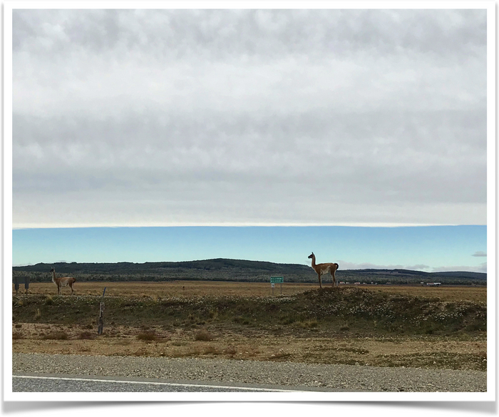 Оставив ледник за спиной мы двинулись дальше и стали спускаться с гор - нас ждали пампасы. Пампасы - это степи Патагонии, бесконечные, с несмолкающими ветрами, с ламами, баранами, страусами эму (да-да, говорят, что они и не страусы вообще, а просто похожи и да-да их там стада ходят по этим равнинам), зайцами, серыми лисичками (типа песец). Деревьев мало и те в основном на таких знаках.