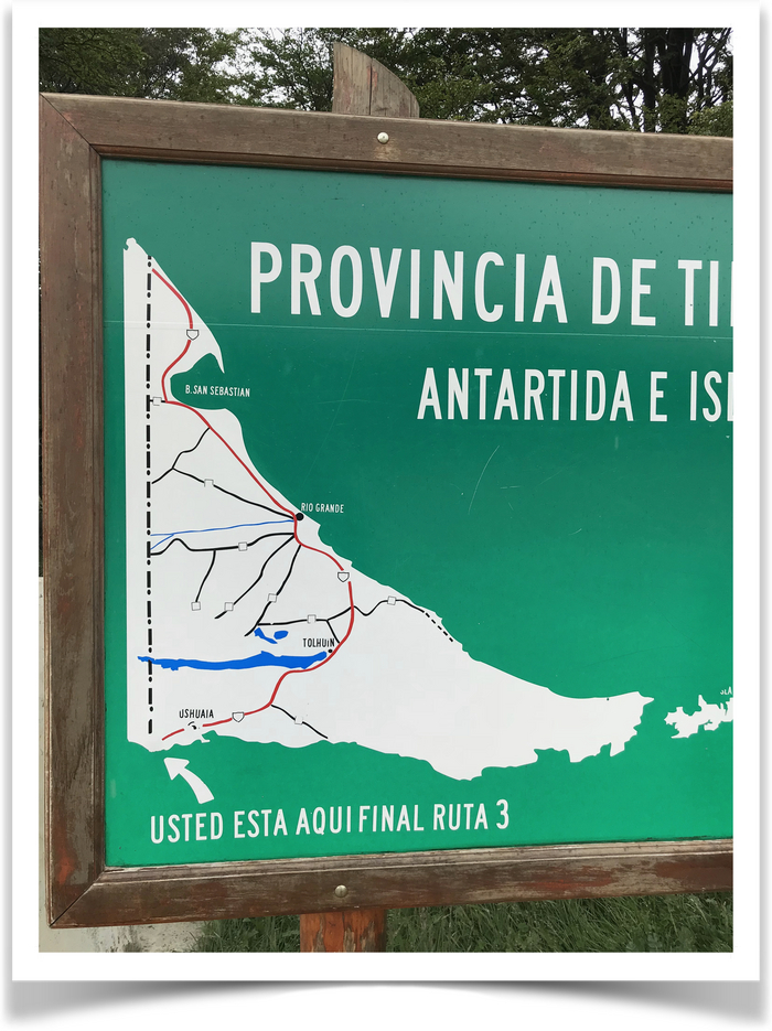 Не могли мы не заехать и в национальный парк (вообще в Ушуайю надо ехать хотя бы на дня 3 -неделю, чтобы все облазить вокруг, в самом городе интересных мест не так много). Поехали «помочить шины на краю земли» - доехали до конца (final) трассы 3 - это место находится как раз в парке. Большой такой постер как раз об этом и говорит - всё, мол, тупик, дорога закончилась - дальше только вплавь.