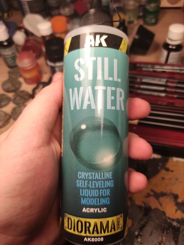 И вот всегда хотелось сделать диораму с водой. Но еб** с двухкомпонентной эпоксидкой не хочется. Вариант для ленивых - AK STILL WATER.