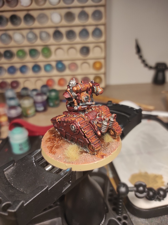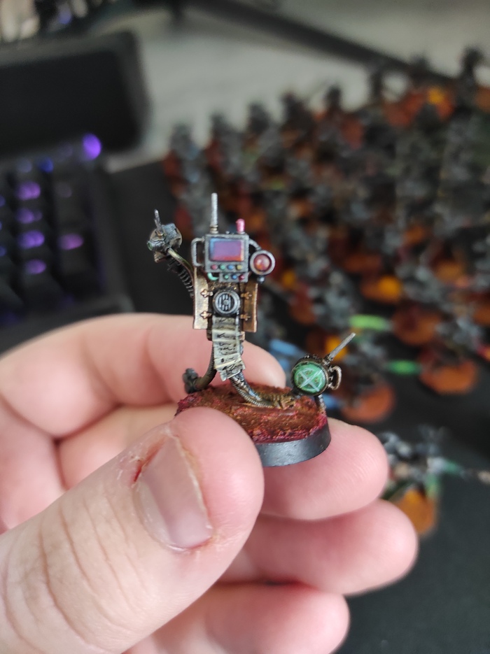 Отдельно отмечу, что очень понравилась краска, которая делает превосходный эффект ржавчины и при этом не нужно хоть как-то с ней мучаться или добавлять другие краски. Нанес и забыл. На сервиторе может не так видно, поэтому орочий мусор для более детального изучения. Рекомендую к покупке.
