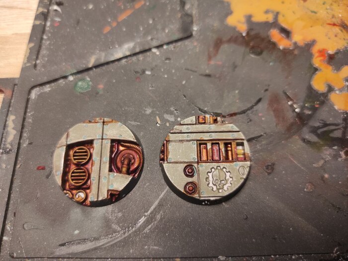 В предыдущей серии (больше 2х лет назад) красили базы из набора "Sector mechanicus base".