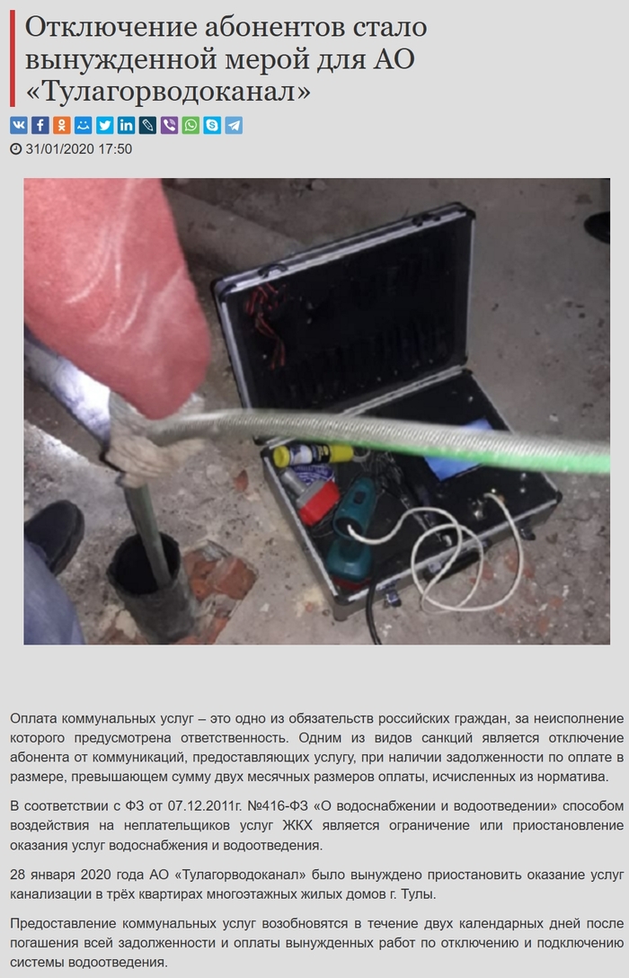 Около 5% абонентов Тулагорводоканала потенциально могут иметь проблемы с поверкой водянных счётчиков, это искусственно созданная ситуация, так как Тулагорводоканал зная об огромных штрафах за такое нарушение не считал своей обязанностью информировать абонентов об истечении интервала поверки — как результат, в судах оказалось огромное количество дел со штрафами около 600-650 тыс. рублей с каждого абонента.