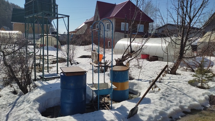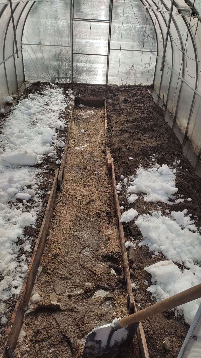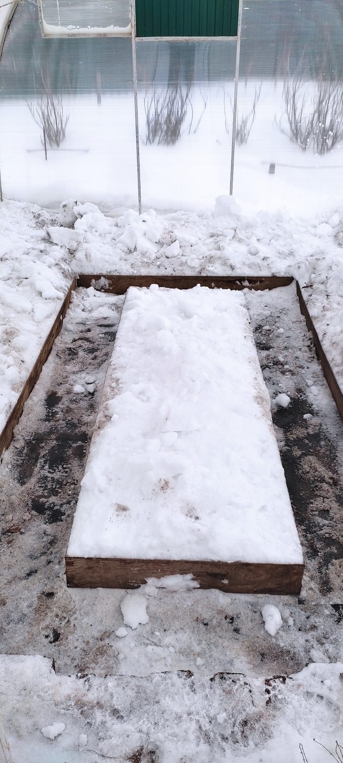 снег накидывают, когда нет возможности поливать сразу после начала сезона посадки, чтоб хоть какая то влага была в земле, плюс накидали снега в бочки и корыта