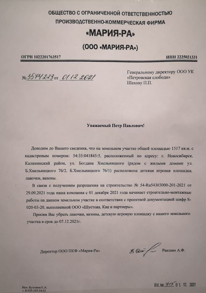 А это принуждение к демонтажу нашей существующей детской площадки.