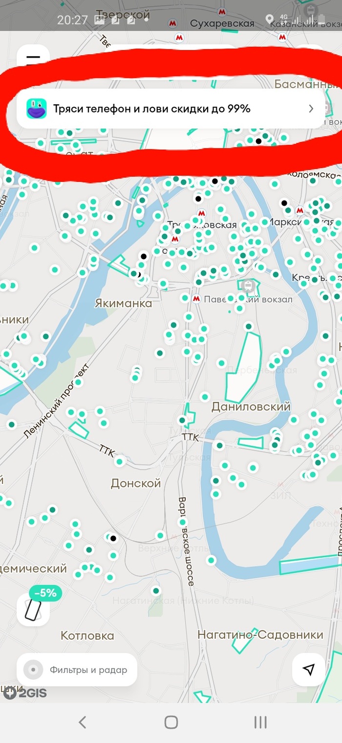 Каршеринг начинанается на Д и заканчивается на "биль" ввёл недавно скидку. Трясешь телефон и тебе выпадает скидка. Заявлена скидка до 99%.