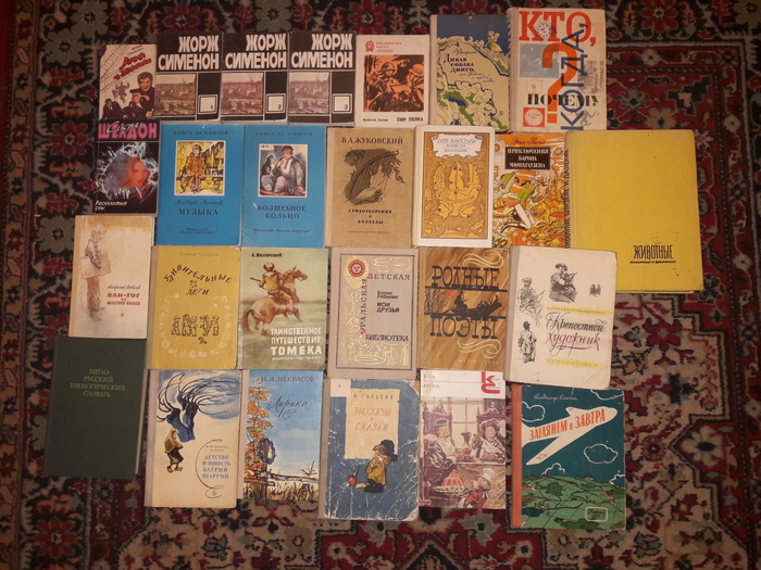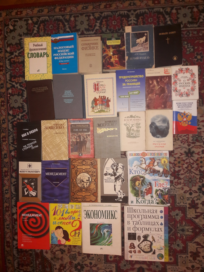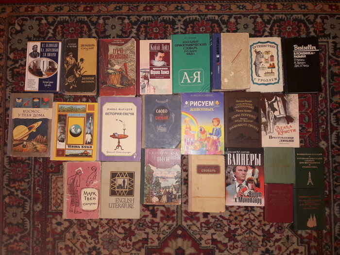 Книги очень разные, от русской и зарубежной классики до словарей и учебников. Постаралась как можно лучше сфотографировать названия.