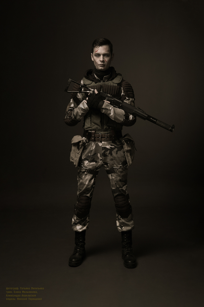 Мой костюм сшит мной, два других костюма сделаны моим хорошим другом Николаем Терещенко. Напоминаю, что это не сферический в вакууме косплей. Это костюмы для страйкбольных игр по сталкеру (сталкерстрайк), сделанные так, чтобы быть максимально похожими на оригинал из компьютерной игры. Так что мокнуть, ползать и бегать в них не только можно, но и нужно. Чем мы и занимаемся. =)