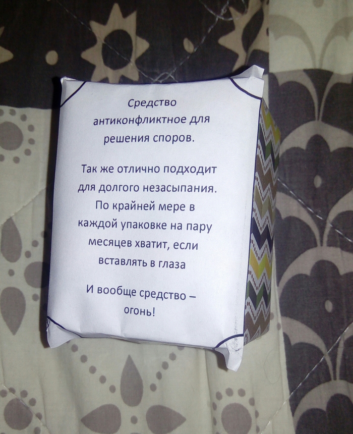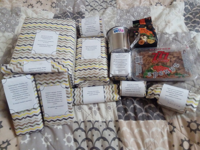 Поскольку муж был на работе, распаковывала без него, отправляя ему фото свертков с подписями. По ним он пытался угадать что внутри. Кое что покажу отдельно.