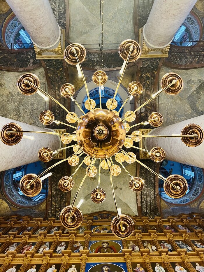 В Астрахани на архиерейском подворье в одном из храмов увидел себя в люстре. Подумал, почему бы не сделать селфи. Хорошая традиция снимать себя в зеркале заложена многими выдающимися фотографами. В тот день на Астраханскую область свалился такой мороз, которого не было лет сто. Уж не знаю, какие обычно бывают морозы, но этот поразил меня в самое нежное чувство, потому что мне казалось, что некоторые детали моего организма настолько сжались, что даже смирились с тем, что больше никогда не пригодятся. Даже в храме ручки тряслись изрядно. Может поэтому селфи не получилось. А больше всего в Астрахани запомнился торт. Большой, с безе. Больше ничего не помню совсем. Холод и торт. Почти как название для нового альбома Юты.