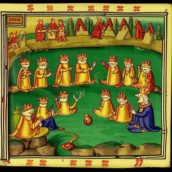 В Южной Фламандии жил король по имени Кунилир. Он был не только правителем, но и настоящим любителем искусства. Однажды, во время своей утренней прогулки по живописному болоту, король остановился, чтобы насладиться природой. Вокруг него раздавались звуки: птицы щебетали, ветер шептал, а издалека доносилось характерное кваканье лягушек.