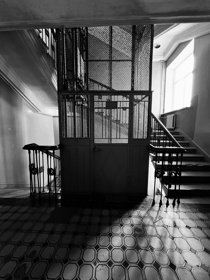 Заблудившись в коридорах Луганской администрации случайно нашел боковую лестницу в которую встроен лифт. Очень винтажный. Мне вспомнился момент из фильма "Карнавальная ночь", где пропихивали сосисочки в лифт застрявшему начальнику.