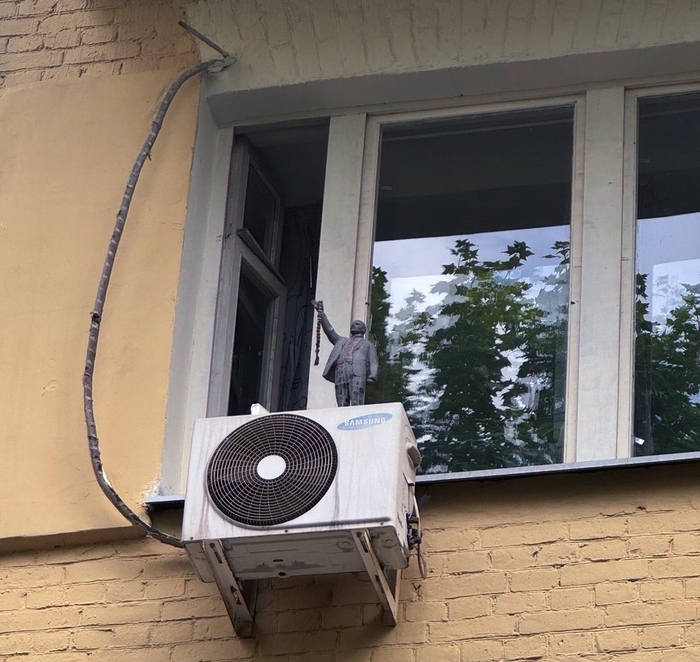 В одном из московских дворов увидел Ленина на внешнем блоке кондиционера. Почему, зачем, почему у него четки? В моей голове это логично улеглось с памятником Ленину-буддисту (как-нибудь еще выложу). Глядя на композицию представляю как в самую жару от вибраций Ленин запевает "вставай, жарою заклейменный и охладись вместе со мной".