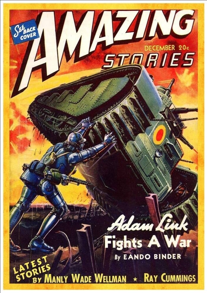 Первым рассказом, опубликованным в январе 1939 года, стал «Я, робот» (не путать с одноименной книгой Айзека Азимова). Рассказ написан от первого лица, с точки зрения новоиспеченного разумного робота, в форме письменной исповеди. В рассказе робот объясняет, что его создал и обучил доктор Чарльз Линк. Когда доктор Линк погибает в результате несчастного случая, экономка предполагает, что робот убил своего хозяина, и робот пускается в бега. В конце истории робот осознает, что его полет представляет опасность для других живых существ, и готовится к самоотключению.
