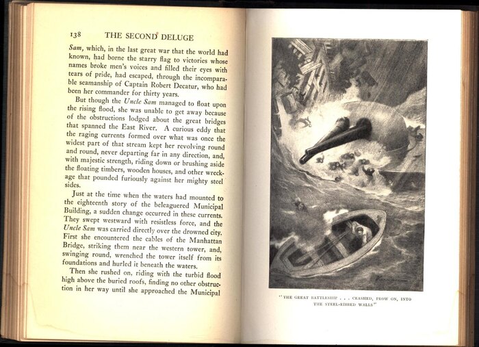 Индийский штат Мегхалая, расположенный к северу от Бангладеш, является рекордсменом по количеству осадков, выпадающих в среднем до 12 метровв год. (Захватите с собой зонтик, если планируете посетить эту местность!) Но хотя этот показатель во много раз превышающий ежегодный показатель среднего европейского города, конечно, впечатляет, он меркнет по сравнению с тем, что сходит с небес в романе Гаррета П. Сервиса «Второй потоп», написанном в 1911 году, в котором по космической случайности на нашу планету за один год выпадает не менее 9144 метров дождя... достаточно, чтобы фактически утопить весь мир, вплоть до самой вершины Эвереста! Прекрасно написанный и довольно эпический по своим масштабам роман - это печально забытое апокалиптическое произведение, которое, несомненно, созрело для повторного открытия в нашу современную эпоху изменения климата и подъема прибрежных вод.
