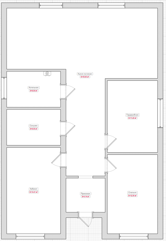 В доме будем жить: я с мужем, собака среднего размера и два кота. В гардеробной комнате хочется устроить что то вроде тренажерного зала, в кабинете надо организовать 2 рабочих места - для меня, работающей на полной удаленке и для мужа для компьютерных игр).