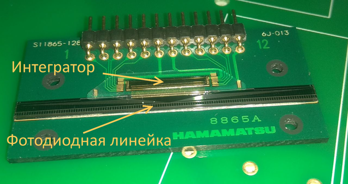 На этой плате 16 фотодиодов (по два на кристалле). Здесь размер пикселя 2,5х4мм.