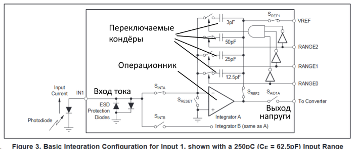 Всё, 2/3 работы выполнено. Мы получили свет и преобразовали его в фотодиоде в ток. Именно в ток, а не в напряжение. Такова судьба фотодиода - быть источником тока. Дальше нам нужно определить количественно, сколько тока прёт. И этот процесс уже является точной калькой с классической фотографии. ВЫДЕРЖКА. Оно же интегрирование. И происходит оно, как не странно, в интеграторе )
