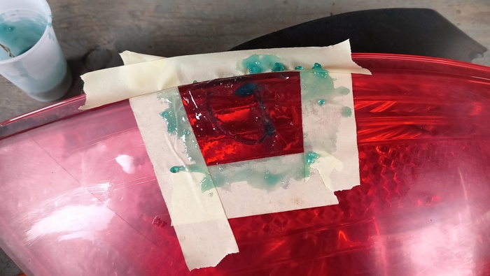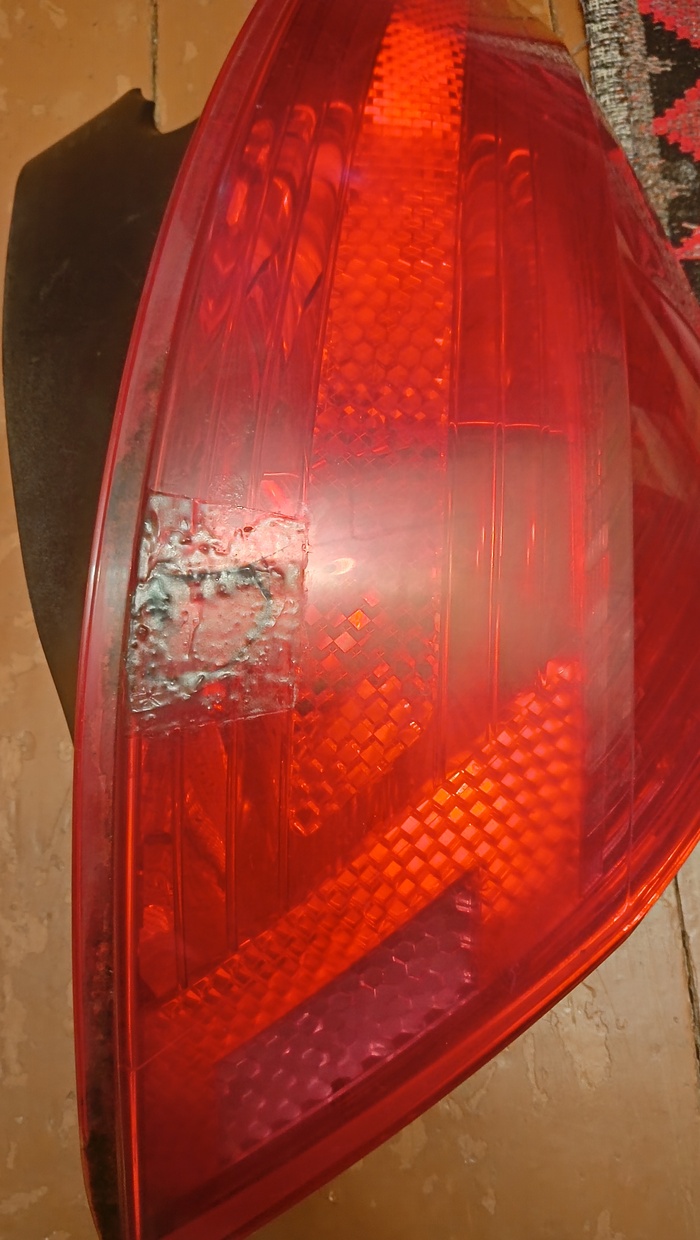 Ещё когда купил автомобиль на заднем фонаре зияло отверстие. Вокруг него были следы от скотча, клея и всего того чем пытались это заклеить до меня