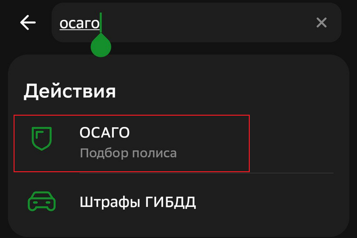 Заходим в приложение Сбербанк онлайн, пишем в поиске Осаго, выбираем "Подбор полиса"