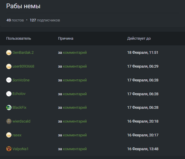 3) Пользователь @BlackFix, заблокирован за комментарий: