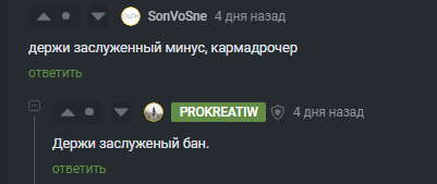 2) Пользователь @SonVoSne заблокирован за комментарий: