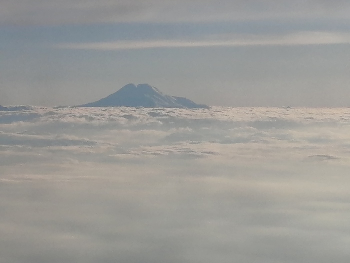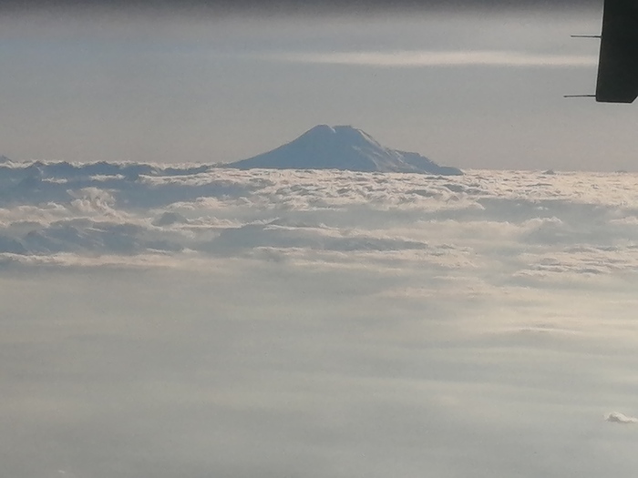 Дальше после пересадки в Москве, отправился в Минеральные Воды. Во время снижения взглянул в иллюминатор и увидел Эльбрус: