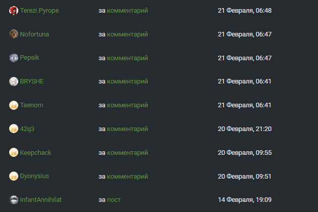 1) Пользователь @Terezi.Pyrope, заблокирован за комментарий: