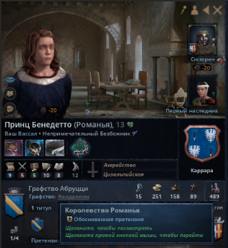 После того, как Иосиф вернул себе то, что принадлежит ему по праву - королевство Романья, ему необходимо навести порядок в своих землях. Но он уже стар, а наследник его безмозглый прелюбодей, который владеет титулом вне державы, все это отдаляет Иосифа и его детей от трона Италии.