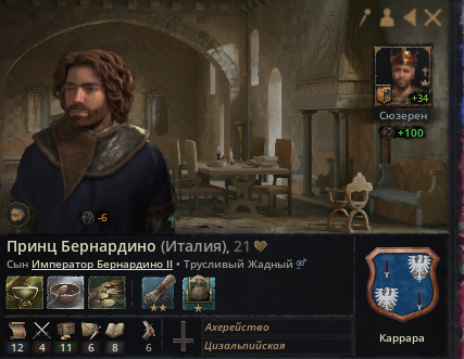 Придворный опекун часто показывал книгу дома де Костамара, рассказывал ему о доблестной Бенедетте, объединившей земли и о коварном Александро, укравшим трон империи у Бернардино. Роман во что бы то ни стало хотел вернуть трон обратно себе в руки.