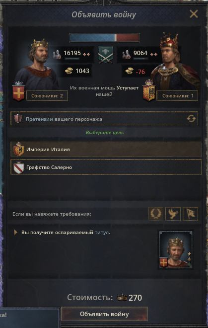 В тоже время Фракция, созданная вассалом приобрела силу и к ней присоединились так же Королевство Италия и королевство Сицилия.