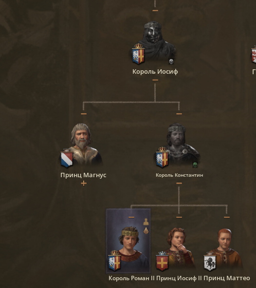 Король Константин отошел в мир иной, он был известен своей паранойей и безумием, его наследниками стали 2 маленьких брата Роман II и Иосиф II, названные в честь своих предков. Все детство Роман провел за встречами со своими сверстниками, скитался по темным помещениям своего дома, следил за детьми и придворными. Его придворный наставник был тайным советником и передал Роману все те знания, которыми он сам владел.