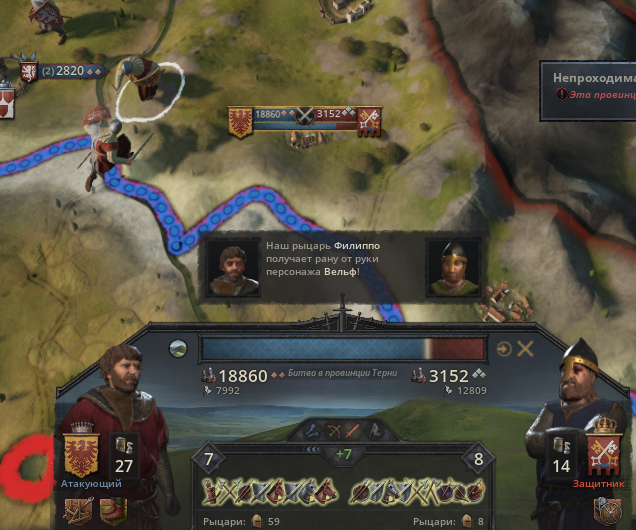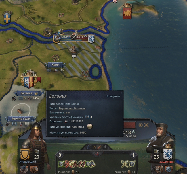 Каждую неделю новые и новые крестоносцы прибывали на в Италию, чтобы захватить королевство Романья, но каждую атаку удавалось успешно отбивать.