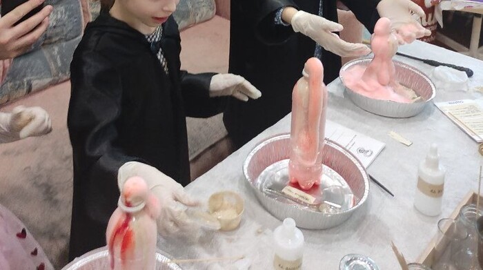 Тут всё просто: детям дали по ложке и баночке (привет, баночки из-под соевого соуса при доставке роллов на дом), надо было надеть наушники и перчи, вытащить мандрагору (а специально обученный человек в это время незаметно включал дикий крик) и ложкой взять в горшке то, в чём она сидела, вернуть мандрагору обратно, чтобы замолчала, принести баночку на проверку и получить оценку.