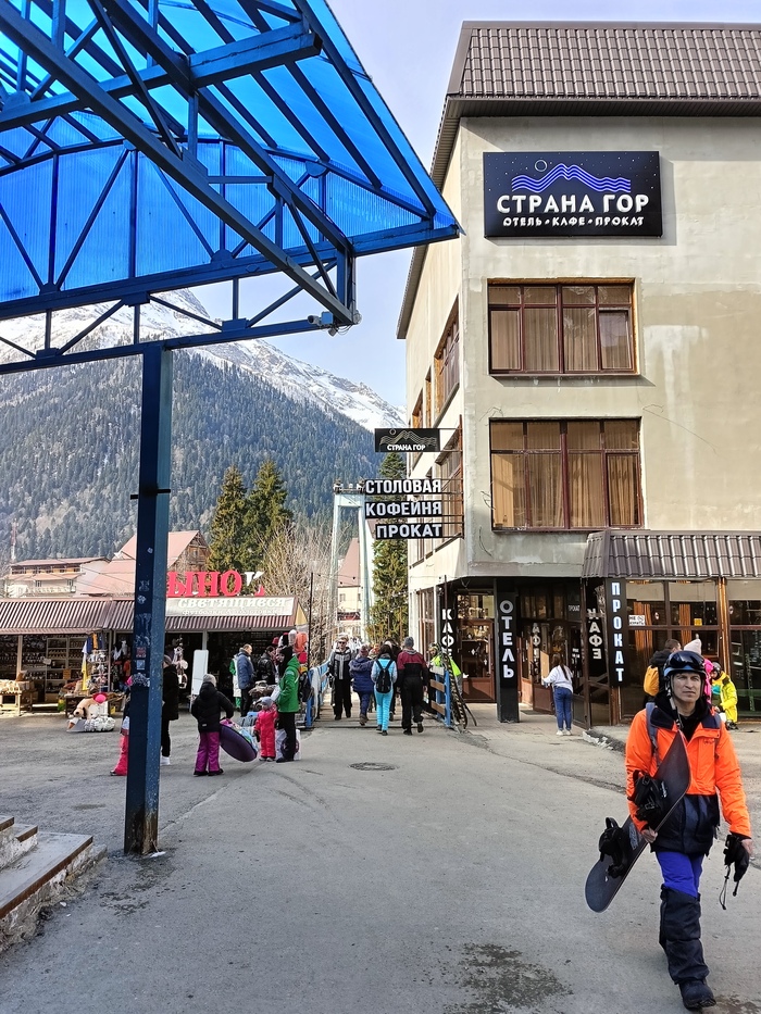 3. Что касается горнолыжного отдыха, скипассы стоят дорого. Существуют способы приобретения льготных абонементов, но использование их остается на ваш страх и риск. Кое-кто продает свои скипассы с существенной скидкой после полудня. Катание заканчивается в 16:30 и нет ночного освещения. Некоторые подъемники были закрыты по приказу Роскомнадзора, из-за чего на второй стадии много народу, но после обеда людей становится меньше. Маленький совет: в центре очередь движется быстрее. Склоны подготавливают ночью, и хотя я не видел, чтобы снежные пушки работали, возможно, это было из-за теплой погоды. Солнце светило всё время, свежего снега не выпадало, так что трассы были изрядно «повидавшими жизнь». Можно прокатиться чуть дольше, спустившись с второй очереди на первую по лесной трассе, но внизу вас ожидают размытый снег, камни и лёд.