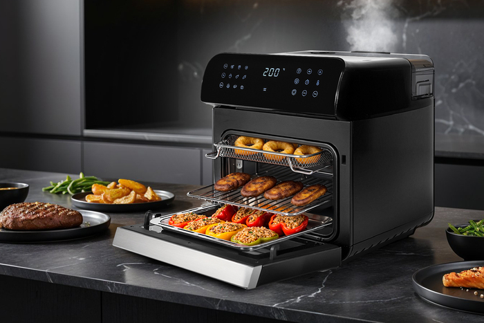 Это уже компактная альтернатива духовке. Конвекция даёт корочку, пар сохраняет сочность.