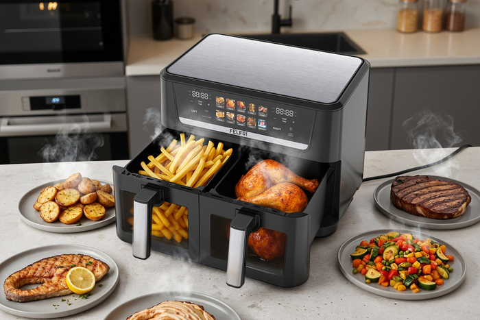 Пример — FELFRI FF-AF-04 с двумя чашами по 5,5 литра. Подходит для семьи и тех, кто ценит время.