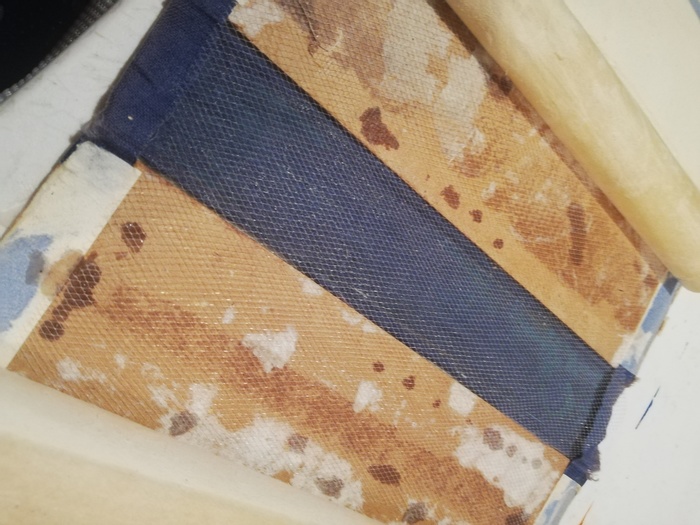 Начинаем укреплять корешок сеткой - она примет на себя часть нагрузки при открывании и закрывании книги