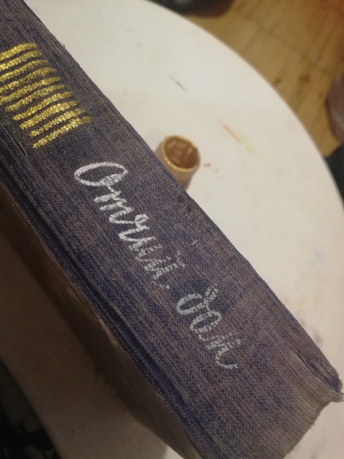 Тут, пожалуй, стоит отметить, что я не реставратор, не имею соответствующего образования и специальных знаний, не претендую на шедевральность и точность работы. Целью было продлить книге жизнь и привести её в то состояние, когда её будет приятнее взять в руки. Также отмечу, что хотелось сохранить оригинальную обложку и, насколько это возможно, восстановить то, что было, а не сделать новое.