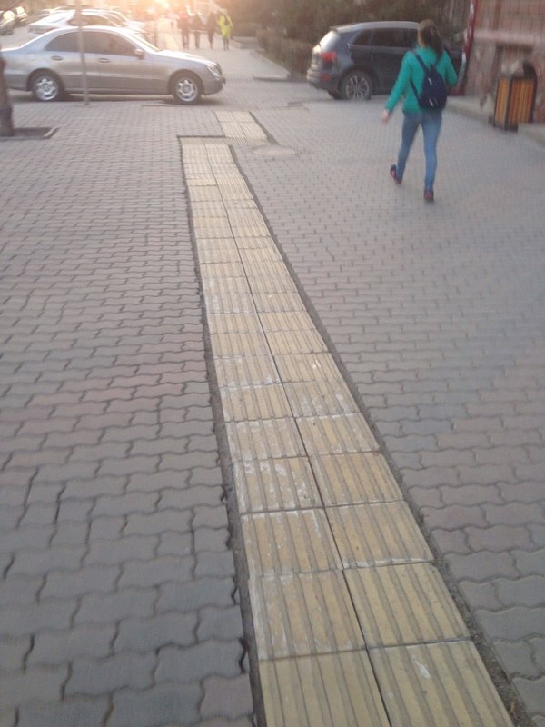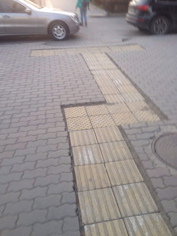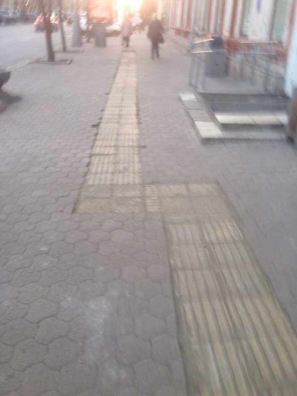 В Красноярске на одной из самых проходимых улиц "выложили" тактильную плитку для слепых, выложили просто на отъебись. Мало того что слепым людям по этому говну будет проблематично ходить , так и теперь сама улица стала выглядеть мягко говоря "уебищно".