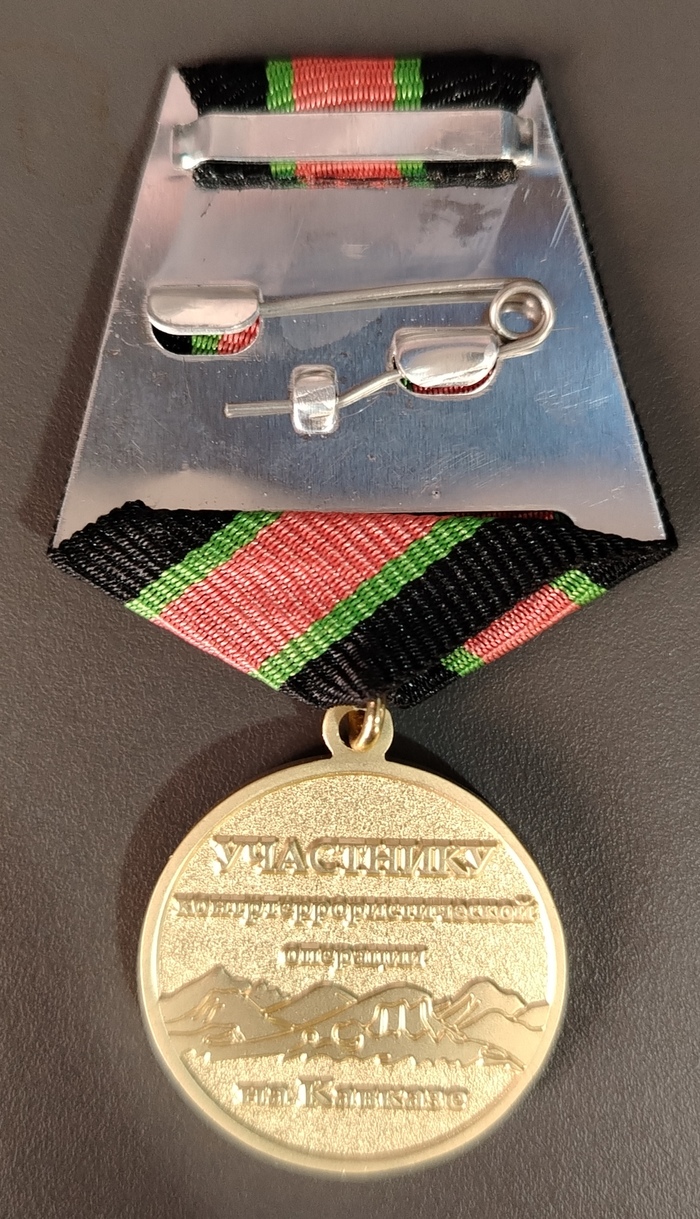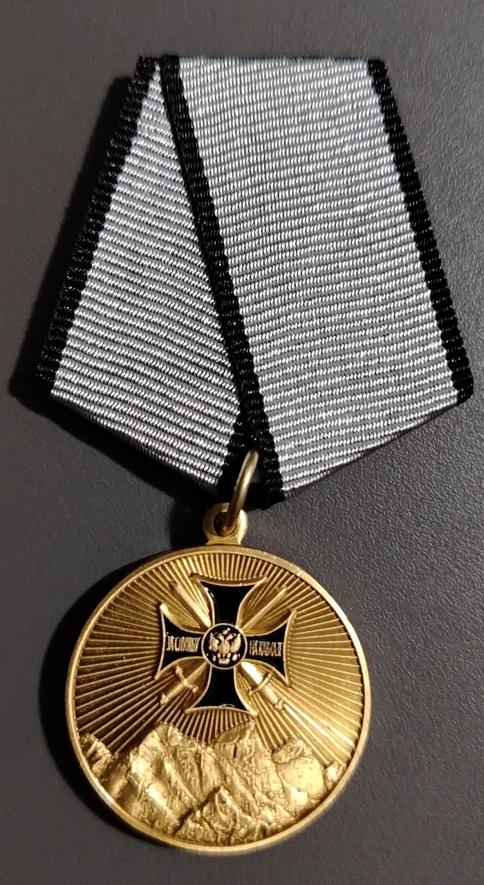 Цвет медали (золотистый) и ленты (серый (серебристый), черный) соответствует историческим цветам офицерского креста «За службу на Кавказе», который изготавливался из золота (серебра), с покрытием черной эмалью.