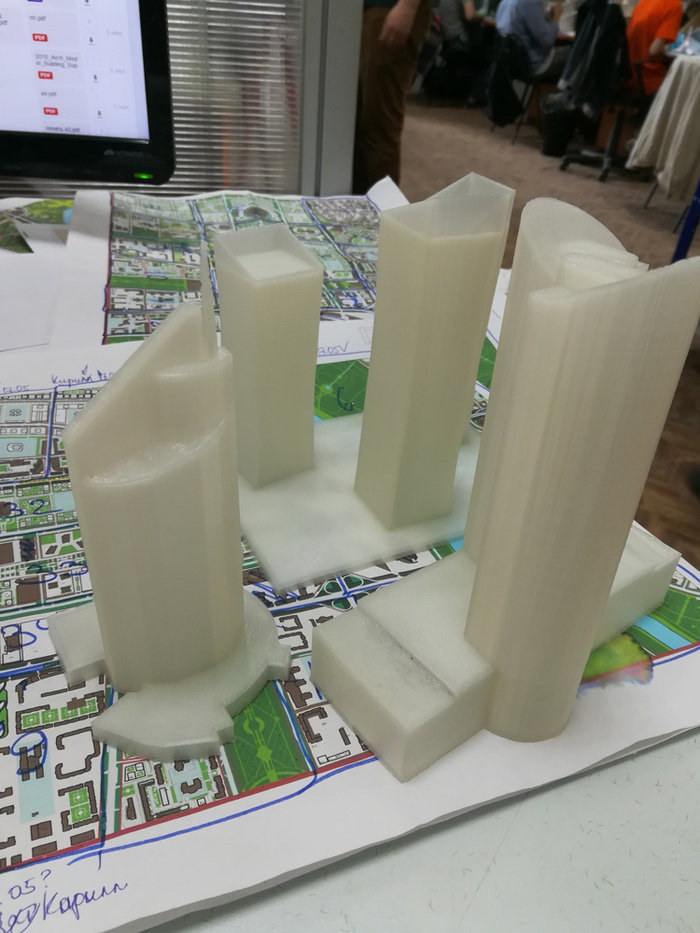 Сами здания выращивали на 3D принтерах, которые трудились почти круглосуточно, и дорабатывались вручную.