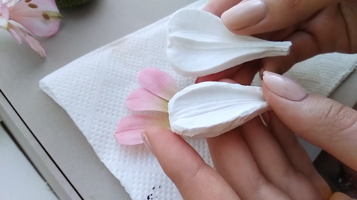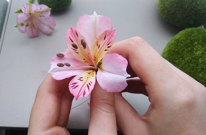 Сегодня будет немного процесса создания цветка альстромерии из холодного фарфора. Так как в этом деле очень много деталей, то в посте будет только о создании лепестков без сборки всего цветка, но для лл ниже будет весь МК полностью в виде видео. То, что должно у нас получится вы можете видеть немного ниже. Начнём.