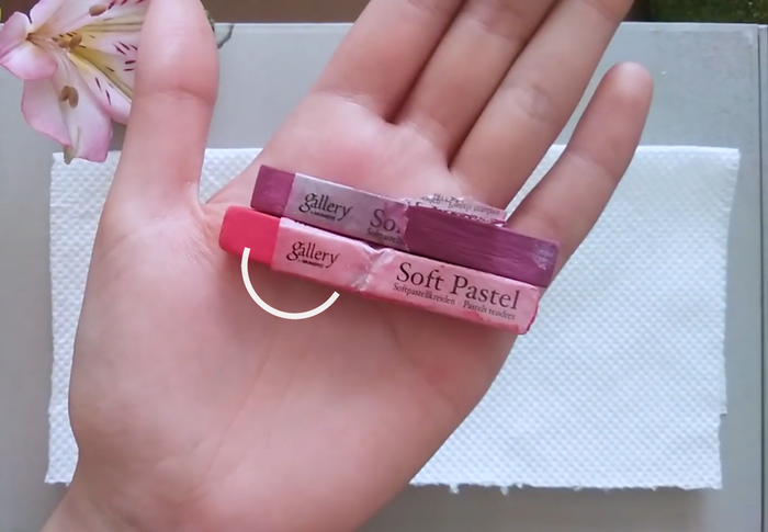 На тех, что более узкие в будущем будут маленькие полосочки, и они более яркие. (хотя это зависит от сорта) На следующих фото уже явно видно разницу между лепестками окрашенными маслом (более бледные) и теми, по которым уже прошлись слоем пастели. Далее наглядно.